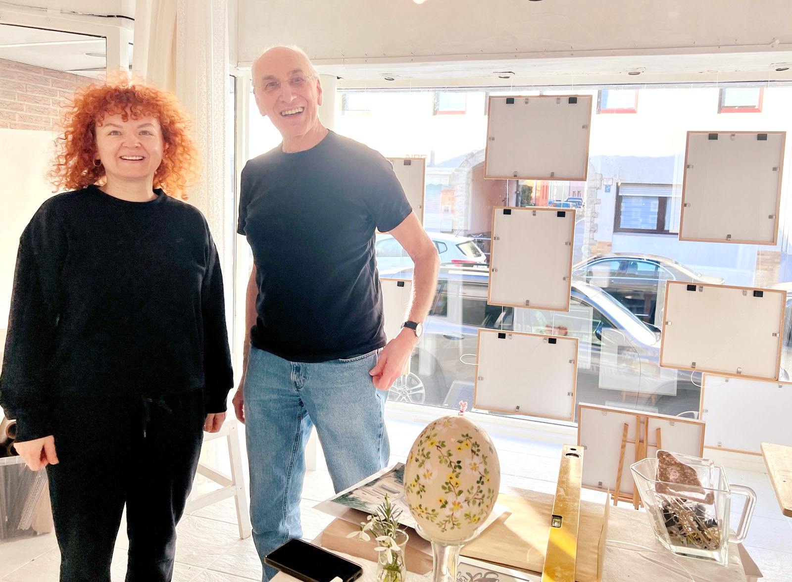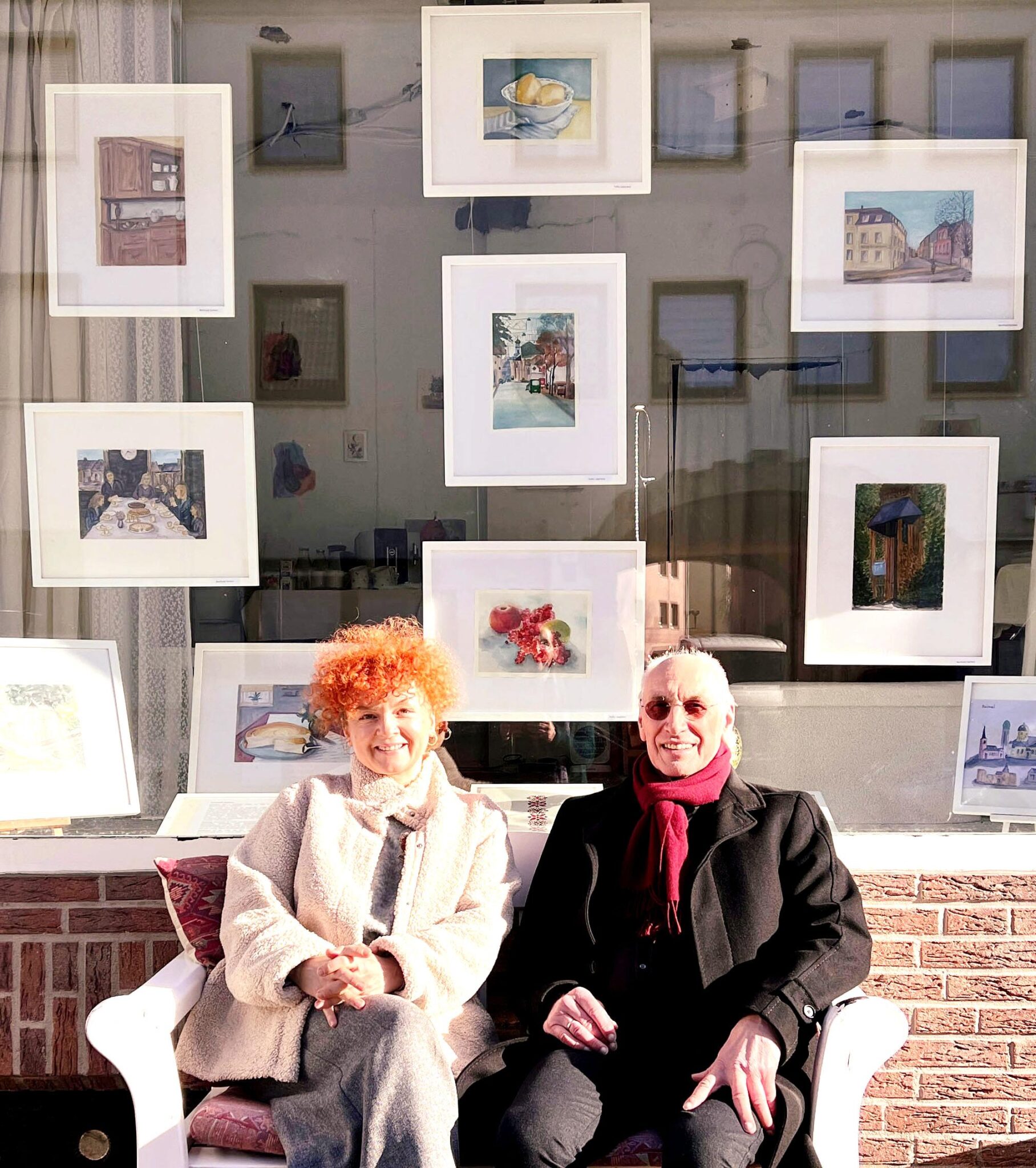Yuliia und Berthold sind Schülerin und Schüler des ukrainischen Künstler*innen- Ehepaares Taisia und Georgiy Zaychenko. Sie stellten ihre Aquarelle gemeinsam unter dem Titel „Heimat und Zuhause“ in der Nordstraße aus; denn mit diesem Ort verbindet sie weit mehr als die Kunst. Nach ihrer Flucht aus der Ukraine haben Yuliia und ihre Tochter zunächst im „Zuhause“ von Berthold Unterkunft gefunden.